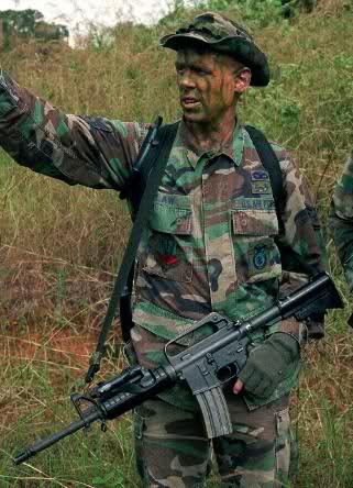 这名美国空军特种部队士兵使用的步枪是更换了M4上机匣的GUU-5/P,下机匣是610的