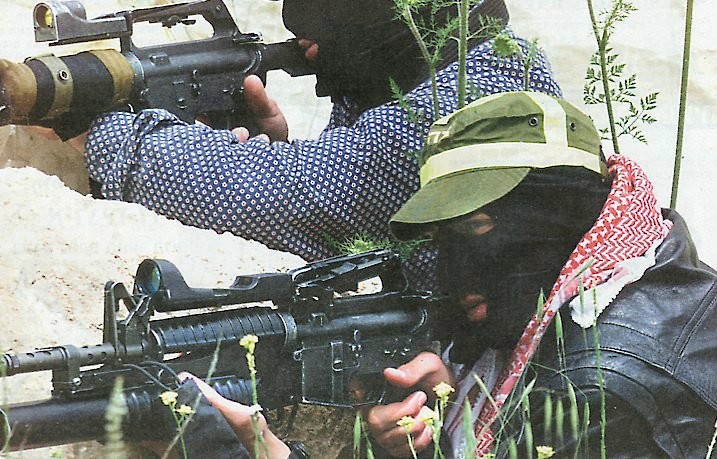 特种侦察队(T'ZASAM)在执行任务,他们的截短型CAR15有枪口防跳器。