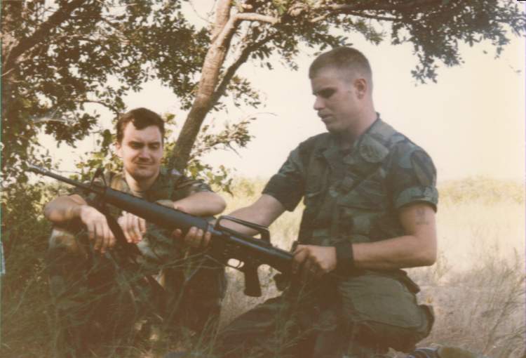 ![]() 这张在伊拉克的照片比较有意思,在M16A2上更换M5 RAS护木 |