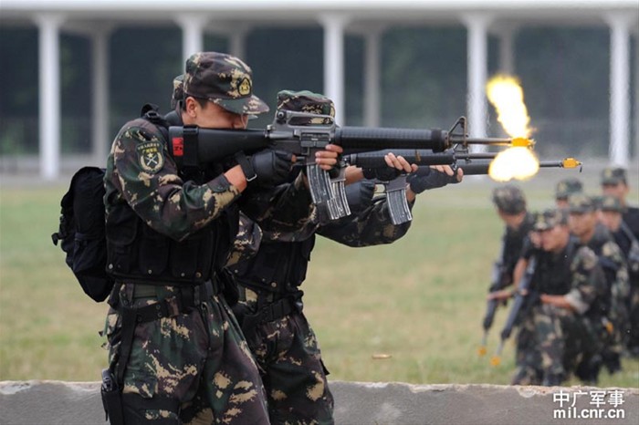 关岛的特警队与美国海军陆战队一起的联合训练中,关岛警察使用的是COLT 604型的M16