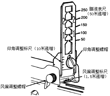 装在护木顶部的立式直瞄瞄准具,用于射击50~250米范围内的点目标