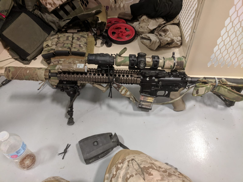 在CG-70伊利亚湖上服役的HLTVrocks用手机拍摄的Mk18,虽然不清晰,但他证实这把枪的下机匣铭文是M16A1改的