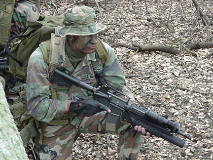 美国空军的气像战斗小队(USAF Combat Weather Team)在佛罗里达州的丛林里进行巡逻训练。图中的M4A1在安装了Crane枪托。