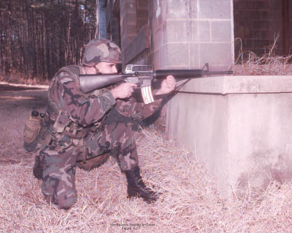 FM23-9要求,在训练的初期,教官应鼓励士兵学会利用稳固的物体为依托,以便提高射击精度和更容易地对付多个目标。