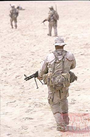 在DISCOVER纪录片中的海豹突击队员,为加快更换弹链的速度,弹链是装在一个预先撕有开口的纸盒内,再把这个纸盒放进左侧弹箱挂架挂着的帆布弹袋内