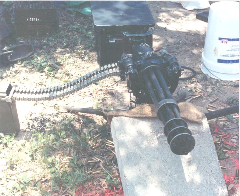 当美国介入印度支那事务时,他们很快就发现他们需要武装他们的直升机,以对抗敌军步兵的近距防空火力。这种情形下通常需要在极短时间内投射大量火力,所以通用电气公司的设计师只是按比例把20mm的M61机炮缩小成7.62×51mm NATO口径,研制出命名为M134 Minigun的加特林原理机枪(空军名称为GAU-2B/A,海军名称为GAU-17/A)。