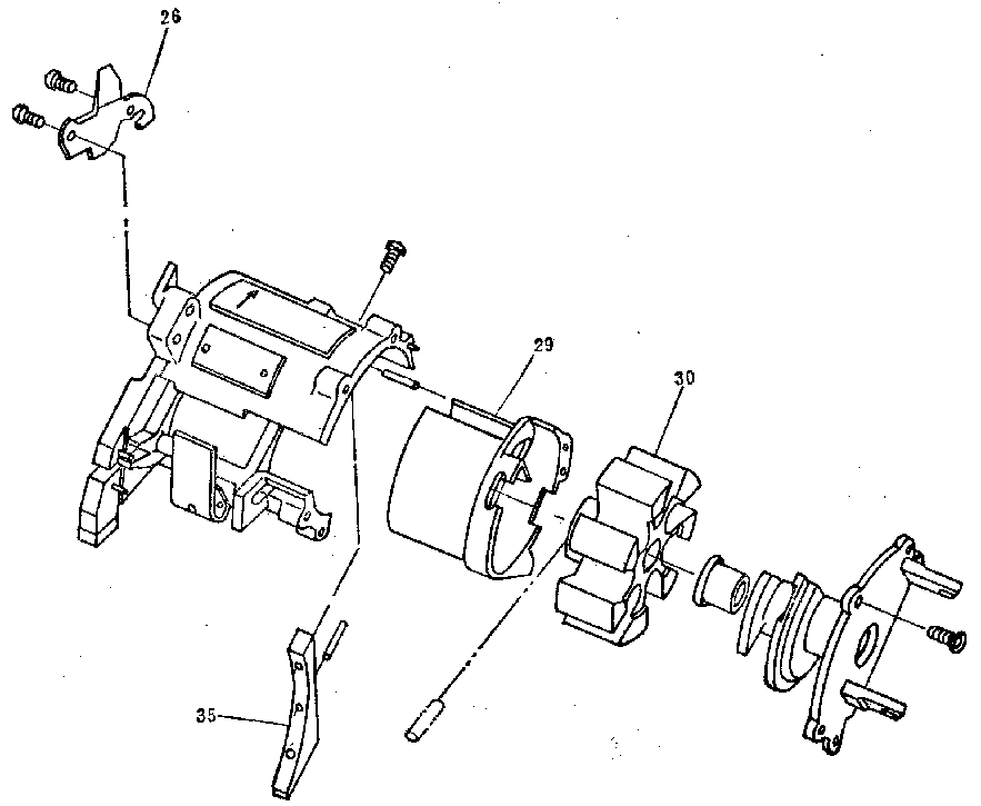 脱链供弹机分解图之二:26-受弹前挡板,29-凸缘导向器,30-输弹轮,35-输弹导杆。
