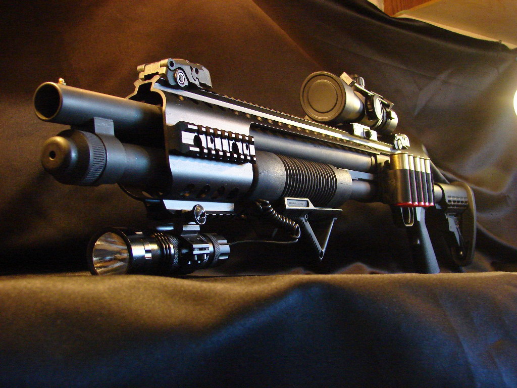 带战术灯前托的莫斯伯格590A1(Tactical Light Forend)6发型,下面是9发型