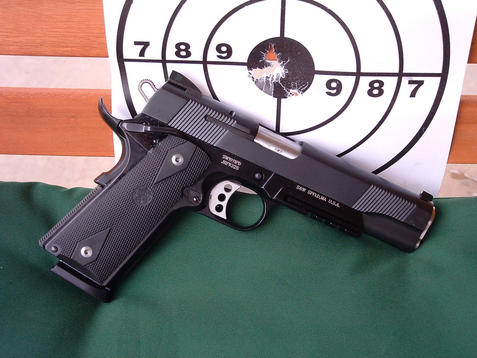 由于美国人的1911情结,很多大厂小厂都出1911手枪,S&W公司在20世纪末也终于决定在1911这个市场上锄一把,S&W公司在1998年SHOT SHOW推出了945型(Model 945)手枪。作为专门针对1911手枪市场的产品,945型本身没有太大的改变,除了套筒的外观采用特征显著的鱼鳞状防滑纹外,比较不容易发现的细微改进就是握把的角度和形状,据说比1911的原有设计更好。除此之外,945型套筒和底把均为不锈钢制品,握把侧板为木制件,弹匣为单排8发。据说945型射击起来后坐感较低,而且精度很好。不过945型在正式推出市场没多久,S&W公司就突然宣布该枪有严重设计缺陷,已经卖出的产品都需要召回工厂进行修理。